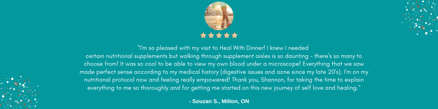 Shannon Dinner, C.N.P., is the owner and founder of Heal With Dinner. She is a Certified Nutritional Practitioner and Live Blood Cell Microscopist (Level I). She is passionate about the intricate relationship between the human body and nutrition and she loves teaching her clients how to take appropriate steps to lead a happy, healthy and balanced life.